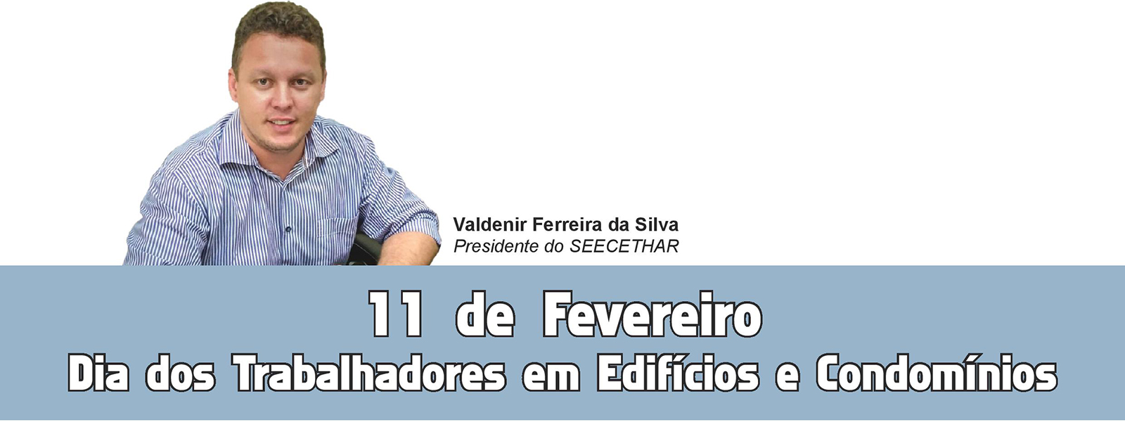 Companheiros e Companheiras, temos a honra de homenagear neste 11 de fevereiro os Trabalhadores em Edifícios e Condomínios, categoria que desempenha papel de fundamental importância e que tem a grande responsabilidade de zelar e proteger a moradia das pessoas, o bem material mais sagrado para todos nós.