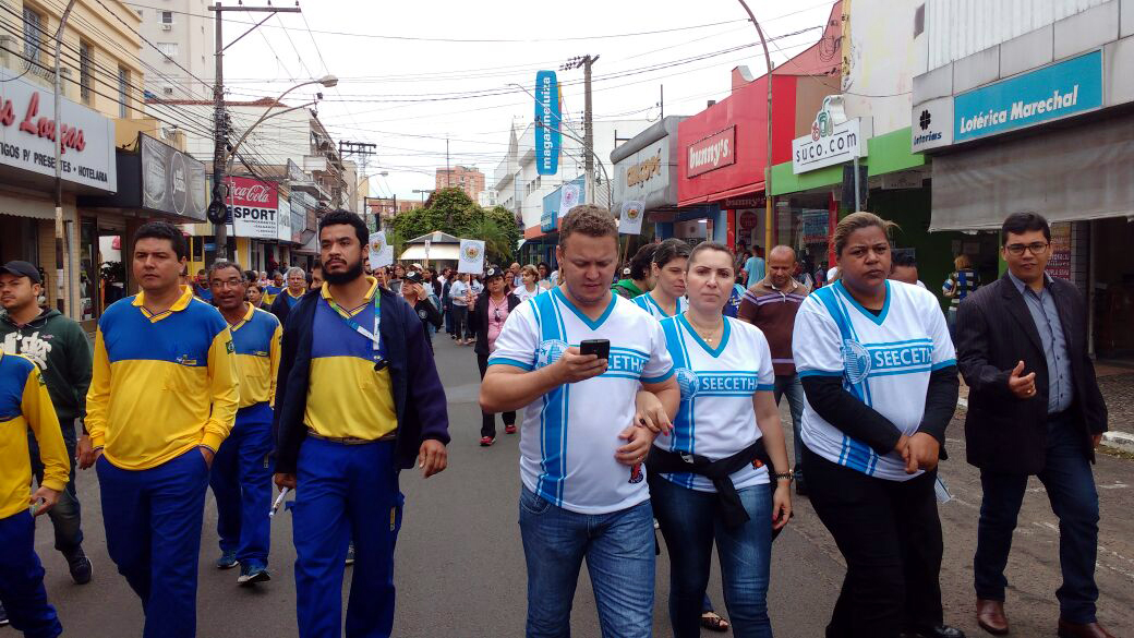 Houve grande adesão à greve em centenas de cidades em todo o País. Em Araçatuba, o SEECETHAR se uniu aos demais sindicatos da região e, juntos, realizamos uma passeata pelas principais vias da cidade. É muito importante sabermos que as reformas precarizam enormemente as condições de trabalho no Brasil e inviabilizam a aposentadoria, principalmente para as pessoas mais pobres e que mais necessitam desse direito fundamental.
