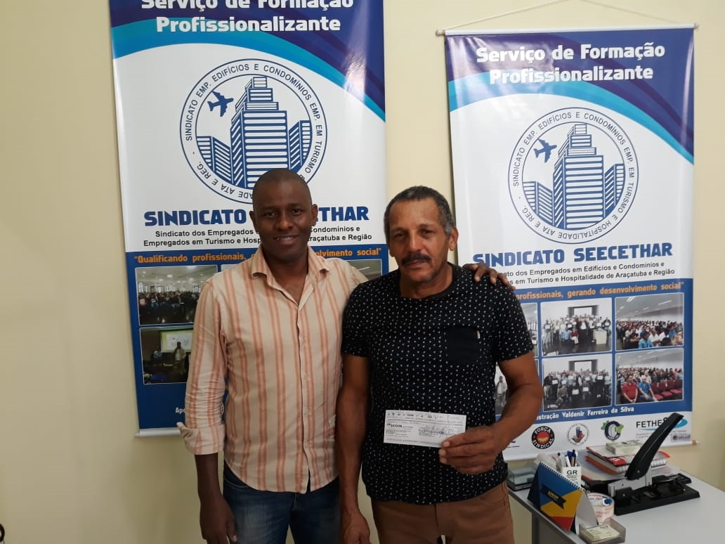 O SEECETHAR começou a entregar, nesta quarta-feira (17/04), cheques referentes ao pagamento de multas, aos trabalhadores de um condomínio que praticava jornada de trabalho 12 X 36 sem anuência do sindicato, conforme determina a Convenção Coletiva de Trabalho.