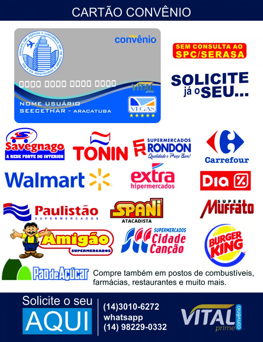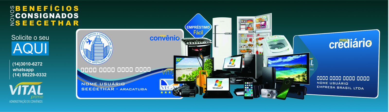 O SEECETHAR firmou uma nova parceria com a administradora de convênios Vital Prime, para oferecer aos nossos associados mais facilidade na liberação de empréstimos e no financiamento em compras de produtos, como calçados, confecções, utilidades domésticas, materiais de construção, entre outros.
