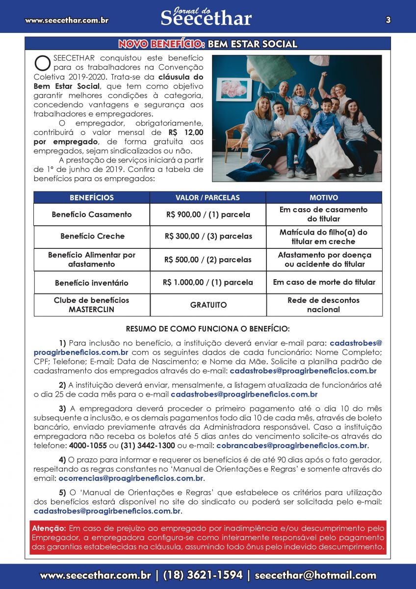 O SEECETHAR conquistou, em conjunto com a FETHESP, este benefício para os trabalhadores na Convenção Coletiva 2019-2020. Trata-se da cláusula do Bem Estar Social, que tem como objetivo garantir melhores condições à categoria, concedendo vantagens e segurança aos trabalhadores e empregadores.