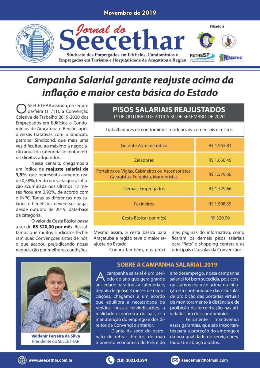 O SEECETHAR assinou, nesta segunda-feira (11/11), a Convenção Coletiva de Trabalho 2019-2020 dos Empregados em Edifícios e Condomínios de Araçatuba e Região, após diversas tratativas com o sindicato patronal Sindicond, que mais uma vez dificultou ao máximo a negociação anual da categoria ao tentar retirar direitos adquiridos.