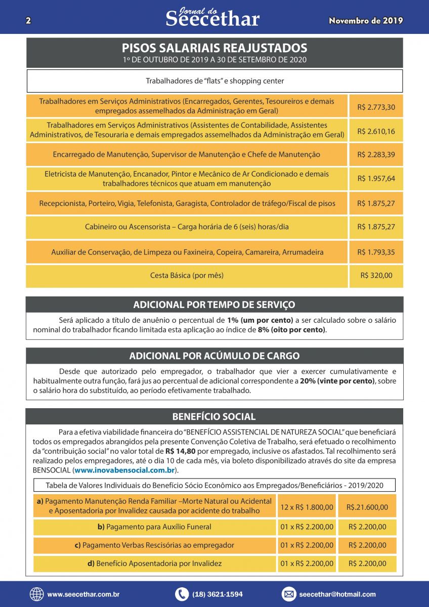Tabela de Valores Individuais do Benefício Sócio Econômico aos Empregados/Beneficiários-2019/2020