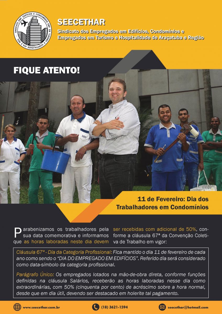 Fica mantido o dia 11 de fevereiro de cada ano como sendo o “DIA DO EMPREGADO EM EDIFÍCIOS”. Referido dia será considerado como data-símbolo da categoria profissional.