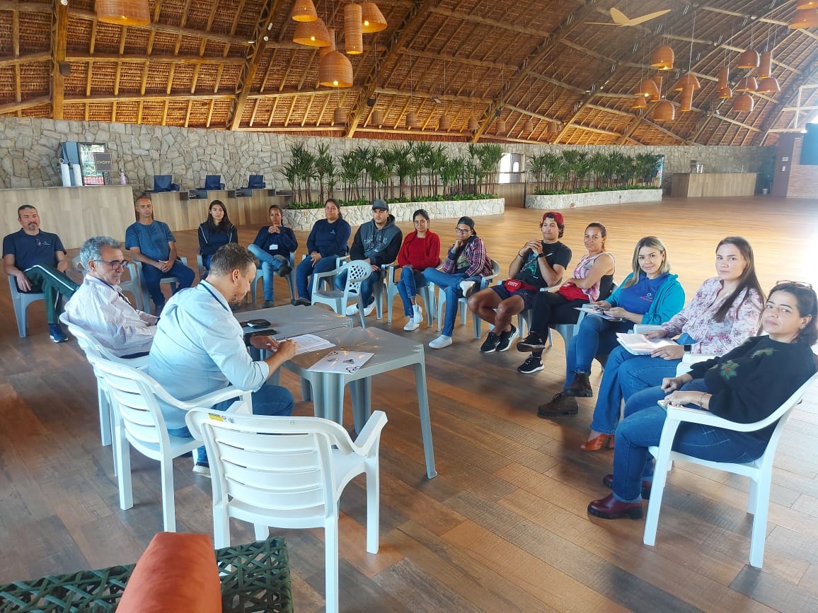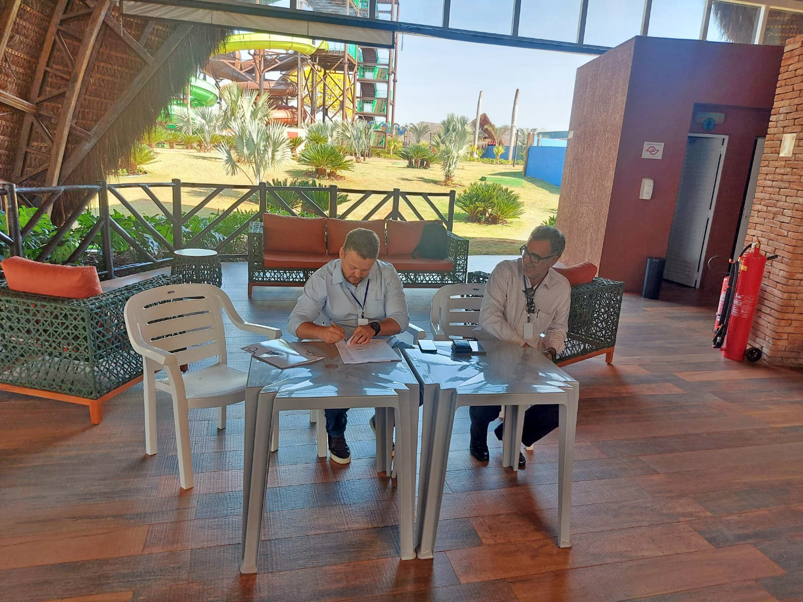 O presidente do SEECETHAR, Valdenir Ferreira da Silva, se reuniu com os empregados do parque aquático Thermas Acqualinda, nesta terça-feira (23/08), em Andradina/SP.