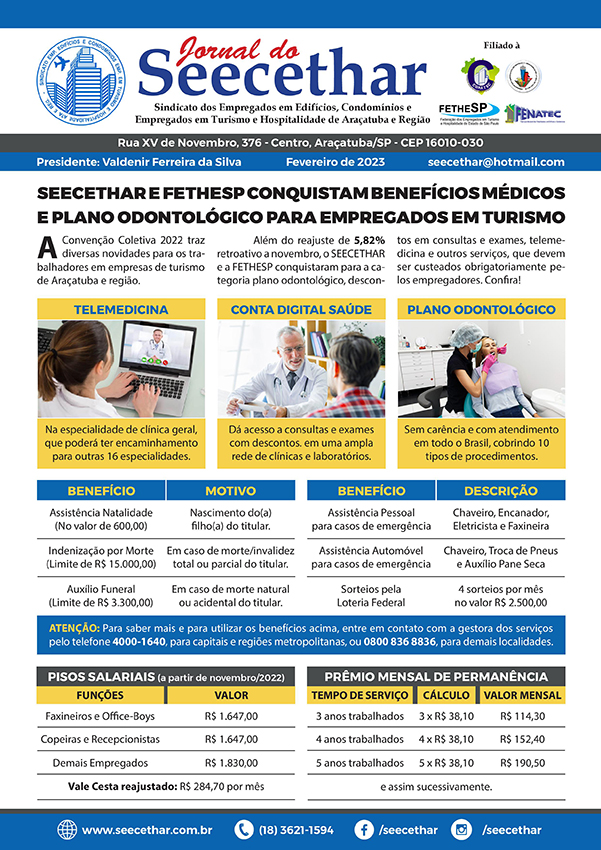 Ficaram mantidas todas as demais cláusulas da Convenção Coletiva anterior, que garantem ao trabalhador benefícios como Adicional Noturno de 50% sobre a hora normal; Auxílio ao filho portador de necessidade especial; Pagamento de ajuda de custo mensal de R$ 127,00 aos empregados que trabalham em regime de home office; Estabilidades de emprego diversas; entre outros direitos que não são assegurados pela CLT nem por leis, mas somente pelo trabalho de negociação feito pelo SEECETHAR.