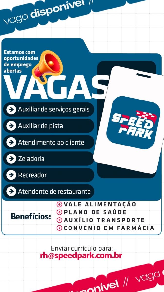 O Speed Park Birigui está com vagas abertas para as seguintes funções: