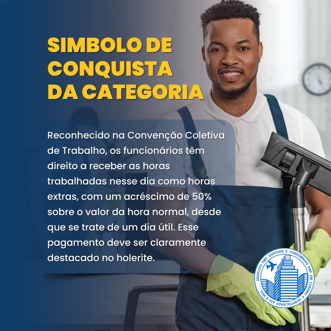 O SEECETHAR lembra que, conforme a cláusula 71ª da Convenção Coletiva, os trabalhadores que prestarem serviço nesta data, desde que seja dia útil, devem receber as horas laboradas como extraordinárias, com acréscimo de 50% sobre a hora normal, devendo tal pagamento ser destacado no holerite.