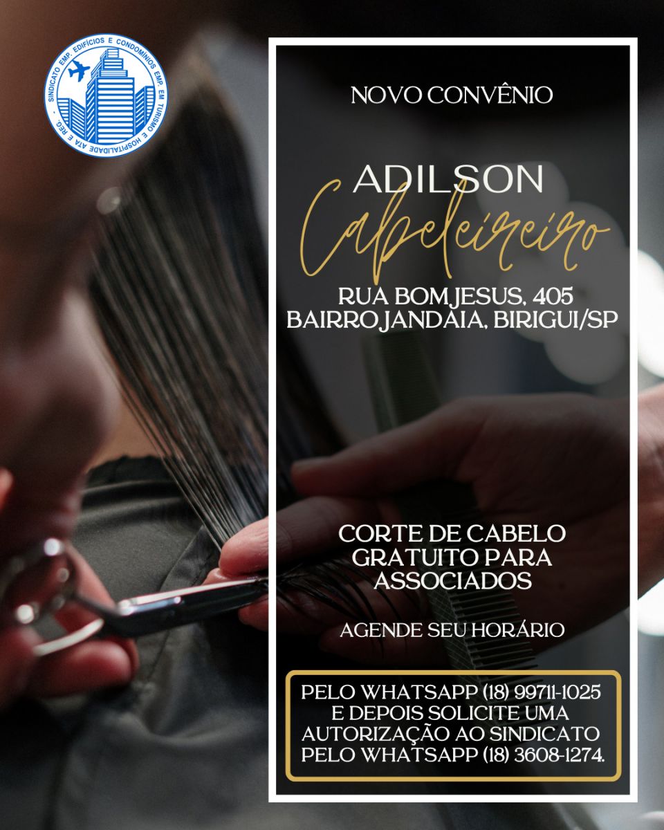 O SEECETHAR firmou mais uma parceria na área da beleza. A partir de agora, associados (homens) ao sindicato têm direito a corte de cabelo gratuito no salão Adilson Cabeleireiros Unissex, localizado na Rua Bom Jesus, 405 – Bairro Jandaia, Birigui/SP.