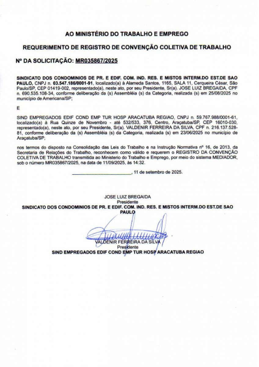 Está encerrada a Campanha Salarial 2025 após a conclusão das negociações com o sindicato patronal – Sindicond. A partir de 01/10, entra em vigor a Convenção Coletiva 2025/2026 (solicite pelo e-mail seecethar@hotmail.com).