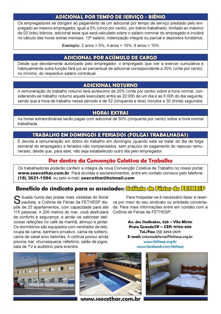 A nova Convenção Coletiva dos empregados em CVL, que tem vigência de 1º de maio de 2016 a 30 de abril de 2018, se encontra em fase de protocolização no Ministério do Trabalho e Emprego e será divulgada no site do SEECETHAR (www.seecethar.com.br) após os procedimentos de praxe.