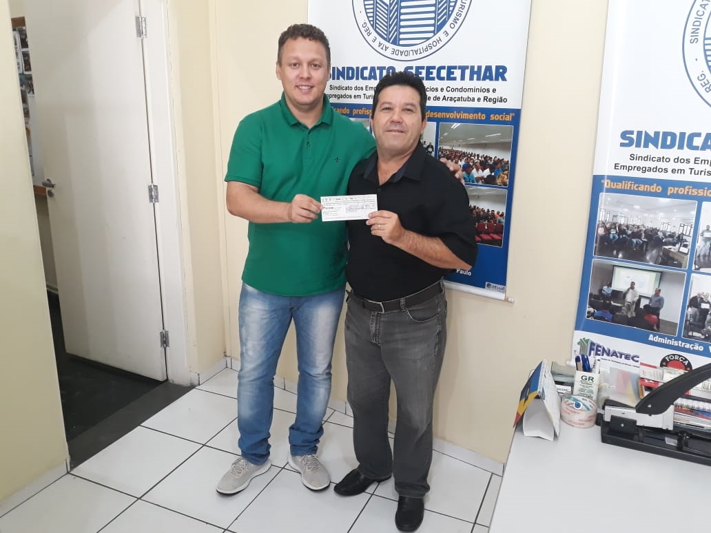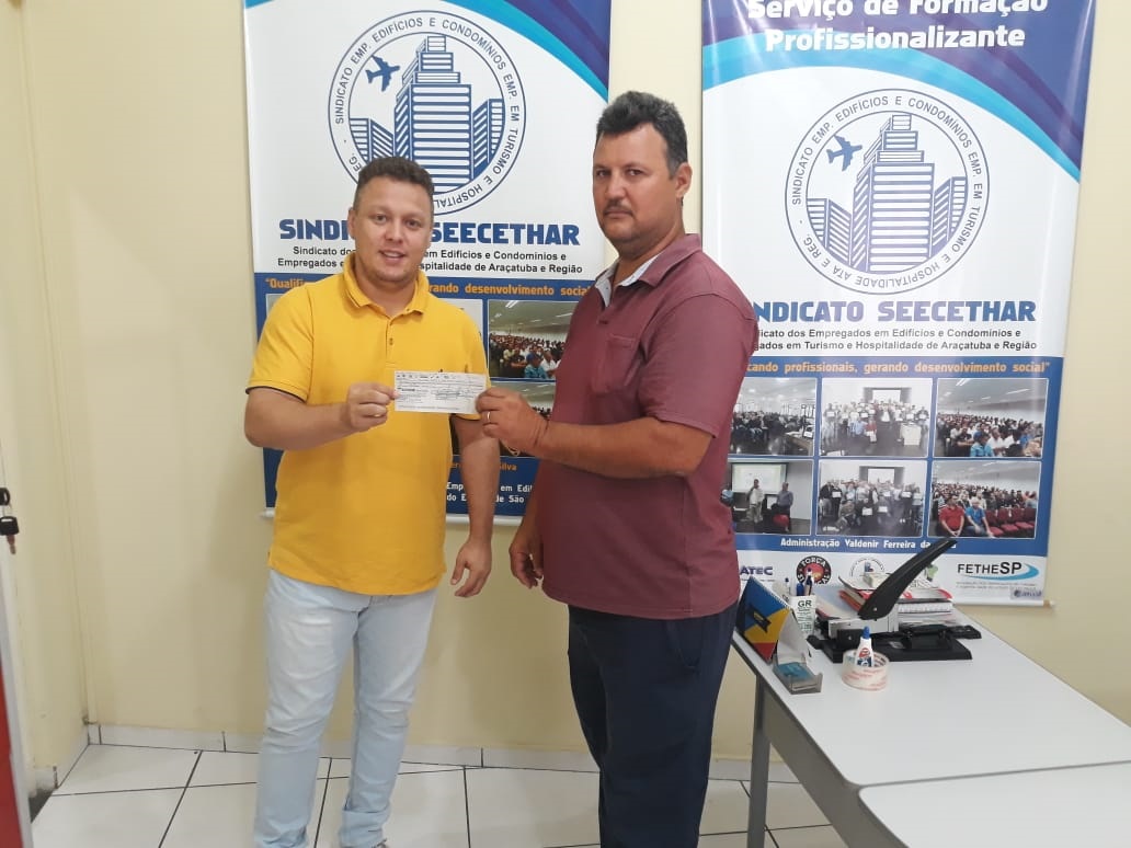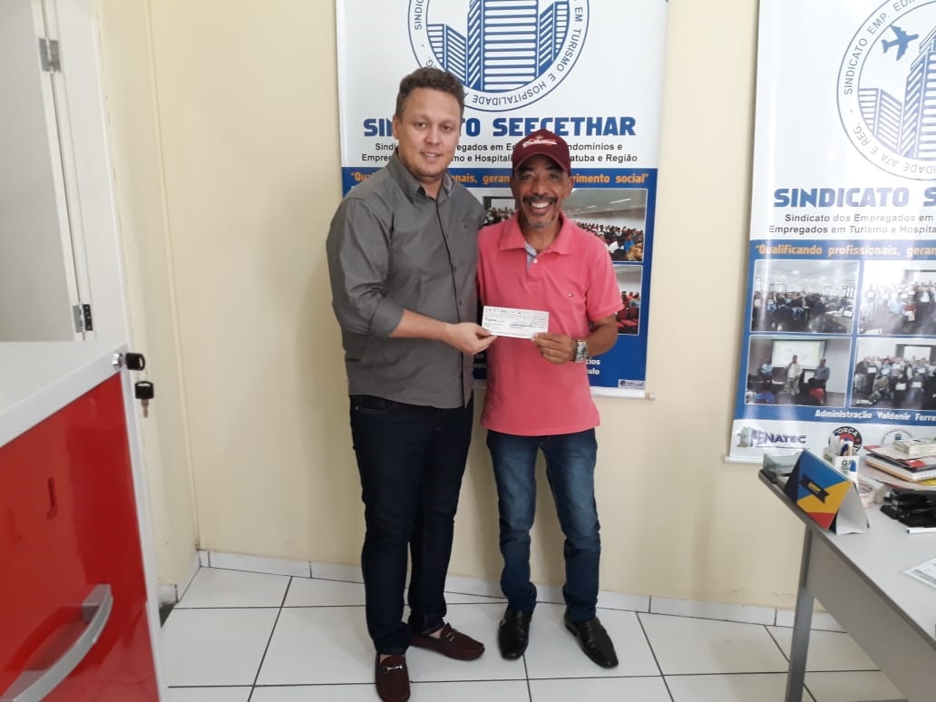 O SEECETHAR começou a entregar, nesta quarta-feira (17/04), cheques referentes ao pagamento de multas, aos trabalhadores de um condomínio que praticava jornada de trabalho 12 X 36 sem anuência do sindicato, conforme determina a Convenção Coletiva de Trabalho.