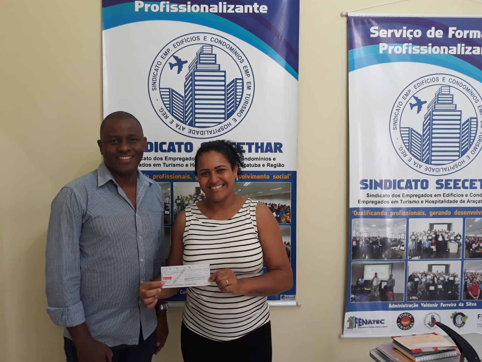 O SEECETHAR, por meio do diretor tesoureiro Alexsandro da Cruz Pereira, entregou na quinta-feira (24/10) mais um cheque do Benefício Natalidade no valor de R$ 400,00.