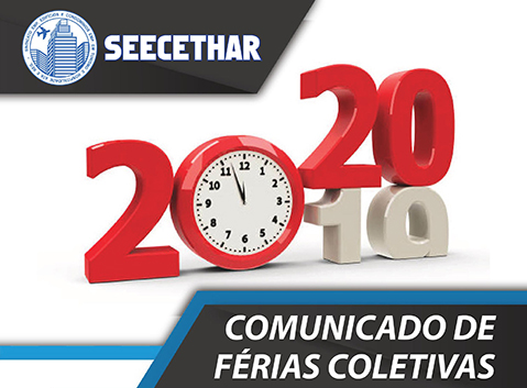 Cumprimos o dever legal de informar-lhes que o Sindicato dos Empregados em Edifícios, Condomínios e Empregados em Turismo e Hospitalidade de Araçatuba e Região, localizado na Rua XV de Novembro, 376 - Centro, Araçatuba/SP, estará fechado por motivo de férias coletivas, no período de 21 de dezembro de 2019 a 02 de janeiro de 2020, retornando às nossas atividades no dia 03 de janeiro de 2020.