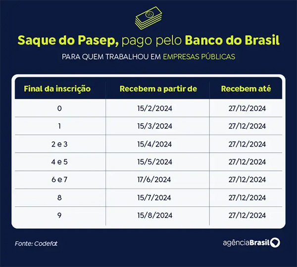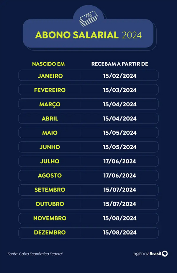 Calendário de pagamento do abono salarial em 2024 - Arte EBC