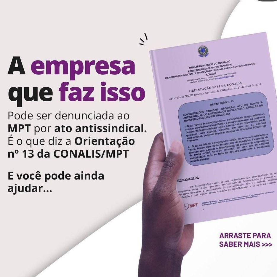 E tem outra coisa, a empresa que faz isso pode ser denunciada ao MPT por ato antissindical. É o que diz a Orientação nº 13 da CONALIS/MPT. E você pode ainda ajudar.