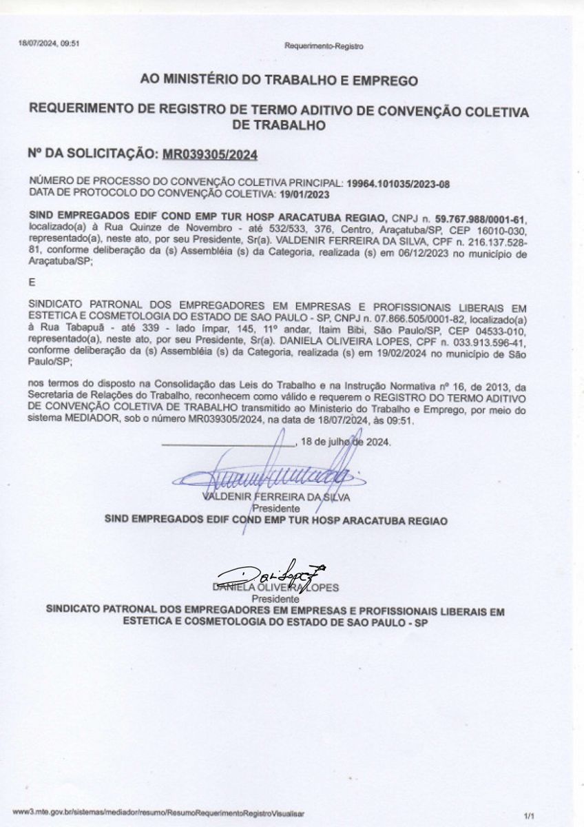 Requerimento de registro da Convenção Coletiva foi enviado ao Ministério do Trabalho